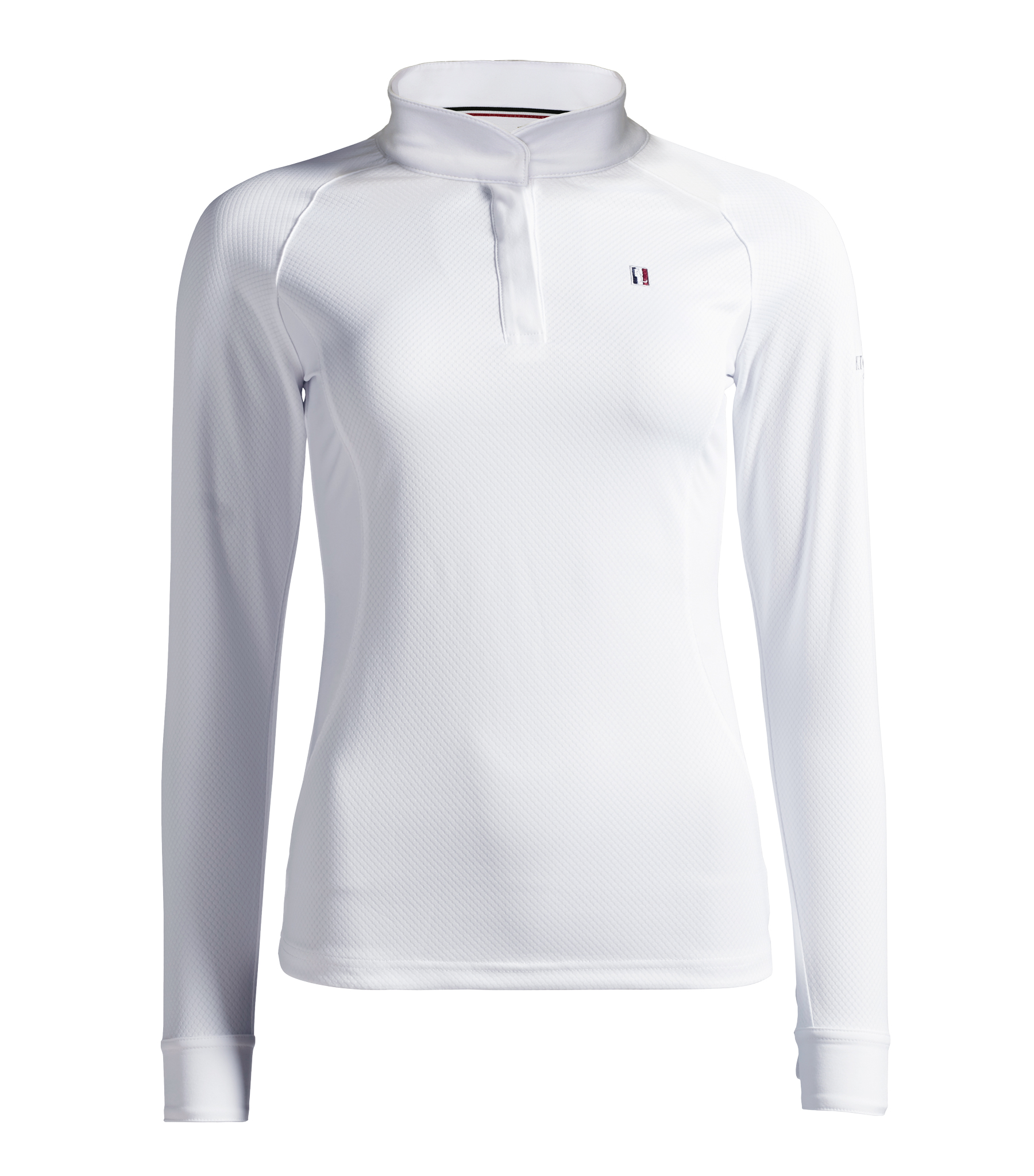 Funktionel højt ydende show/stævne skjorte til damer. Åndbart og hurtigttørrende teknisk stof.